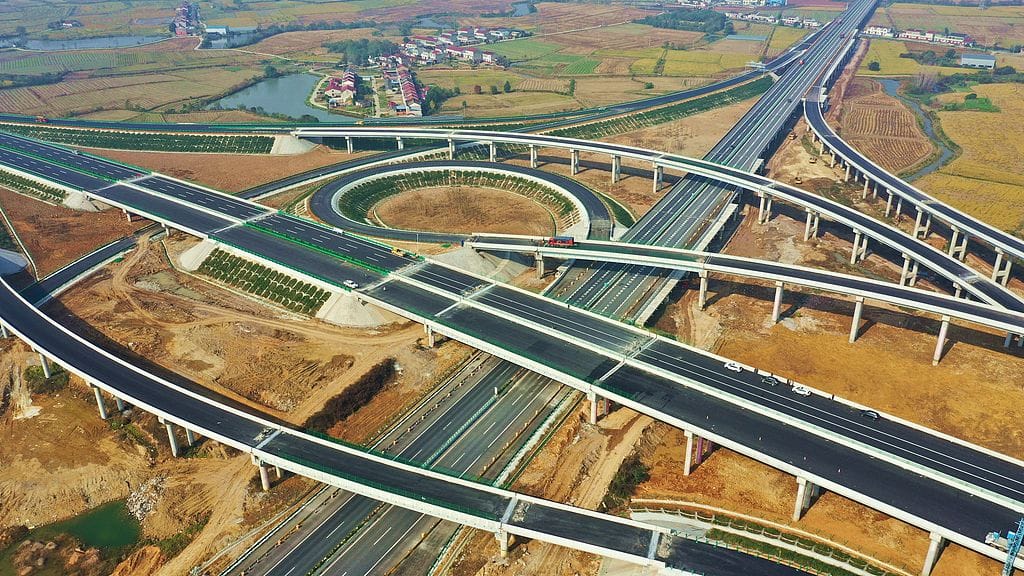 2025年11月14日,安徽六安,航拍“柏林枢纽互通”项目进入收尾阶段。图片来源:CFP